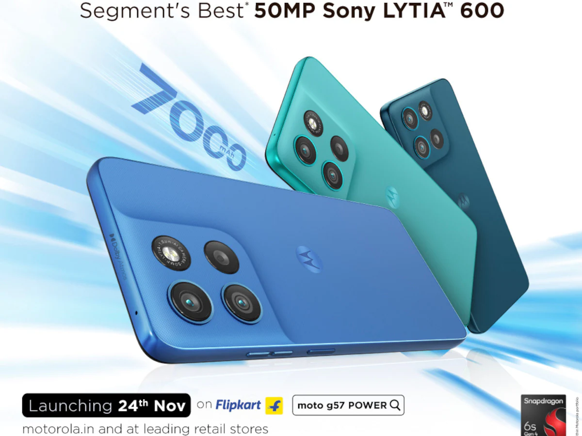 Moto G57 Power भारतीय बाजार में 24 नवंबर को दस्तक देने जा रहा है। इसका टीज़र फ्लिपकार्ट पर जारी हो चुका है और लॉन्च के बाद फोन वहीं उपलब्ध होगा। कंपनी इस स्मार्टफोन को तीन आकर्षक रंग विकल्पों में पेश करेगी।